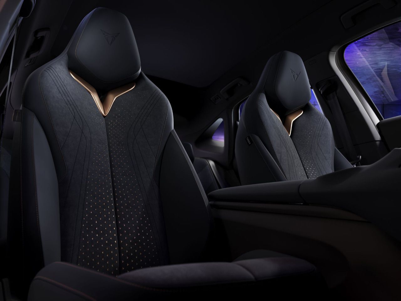 Este enfoque se traslada a elementos soft, como los asientos en los que se han creado elementos gráficos con perforaciones para darle un toque sofisticado que complementa a la perfección con el color Copper (cobre), característico de la marca. Los asientos deportivos Bucket (también se comercializará con los exclusivos CUPBucket con revestimiento de fibra de carbono a la vista) aumentan su deportividad al tapizarlos con una selección de materiales sostenibles textil (hasta 90% poliéster reciclado) o microfibra (hasta un 50% reciclada) así como la malla paramétrica 3D.