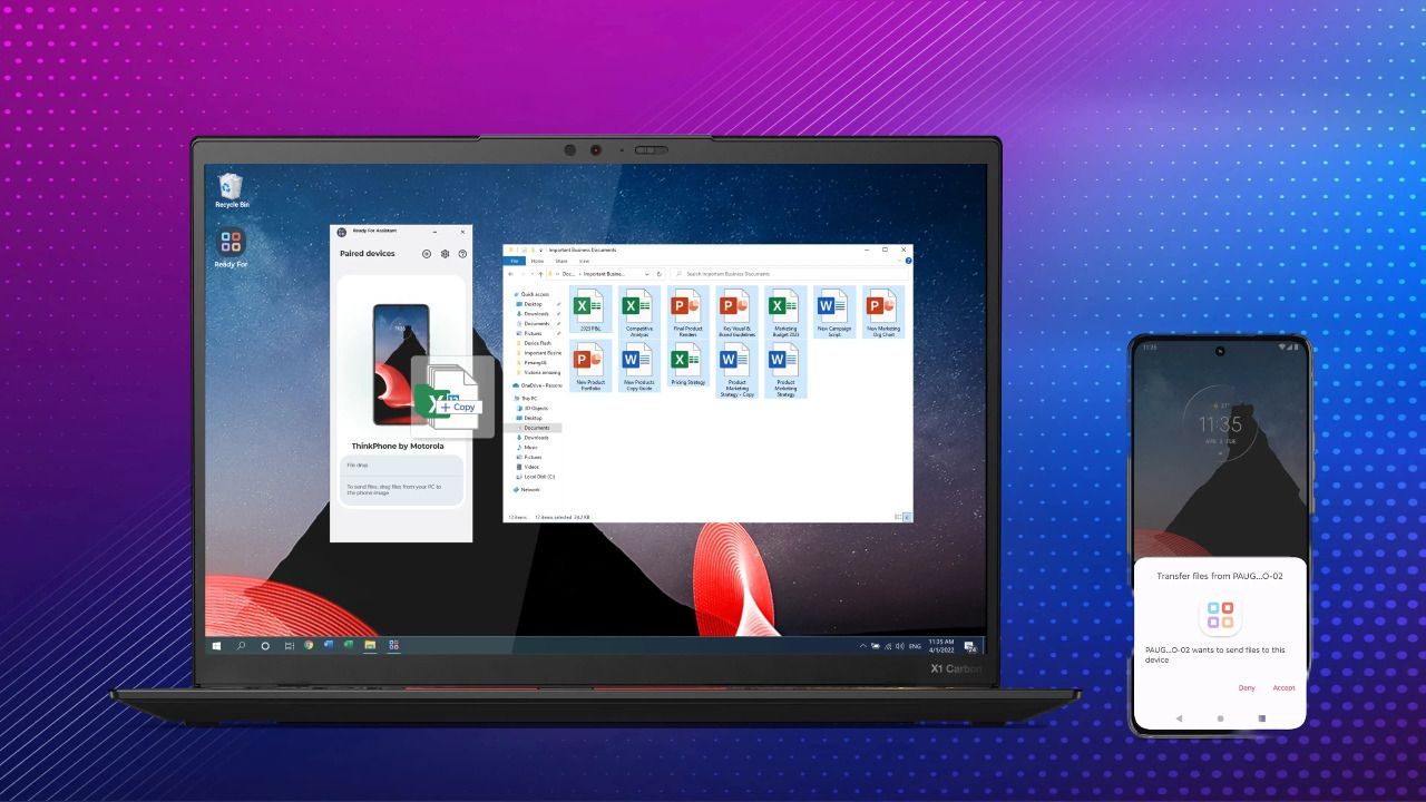 Gracias a ello, el ThinkPhone incorpora diferentes funcionalidades como conexión instantánea, portapapeles unificado, notificaciones unificadas, transferencia de archivos, visualización de aplicaciones, webcam avanzada y punto de acceso instantáneo.
