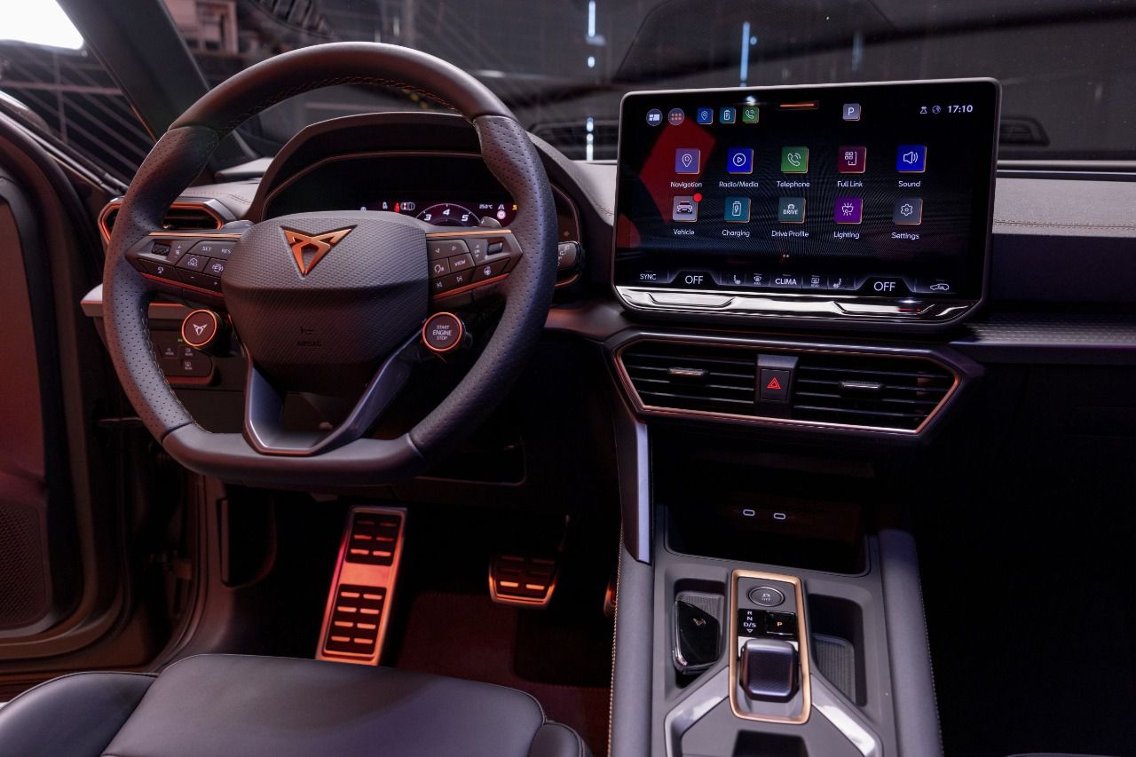 El interior del Cupra Formentor PHEV se actualiza con una pantalla de 12,9 pulgadas, que incorpora el sistema MIB4 de Volkswagen. Se percibe una mejora clara en la fluidez del software y en la velocidad de respuesta, lo que se traduce en una experiencia más rápida e intuitiva.