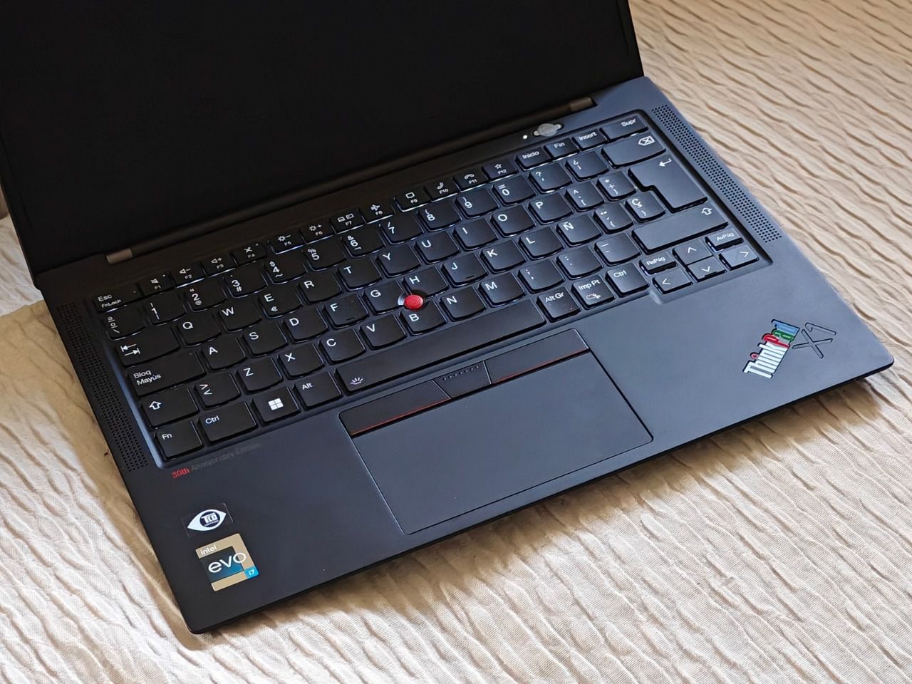 Una característica adicional de la pantalla del Lenovo ThinkPad X1 Carbon 30th Anniversary Edition es la tecnología anti-reflejo. Gracias al acabado mate del panel se minimizan los reflejos y brillos, lo que hace que sea más fácil de usar en ambientes brillantes o con luz solar directa.