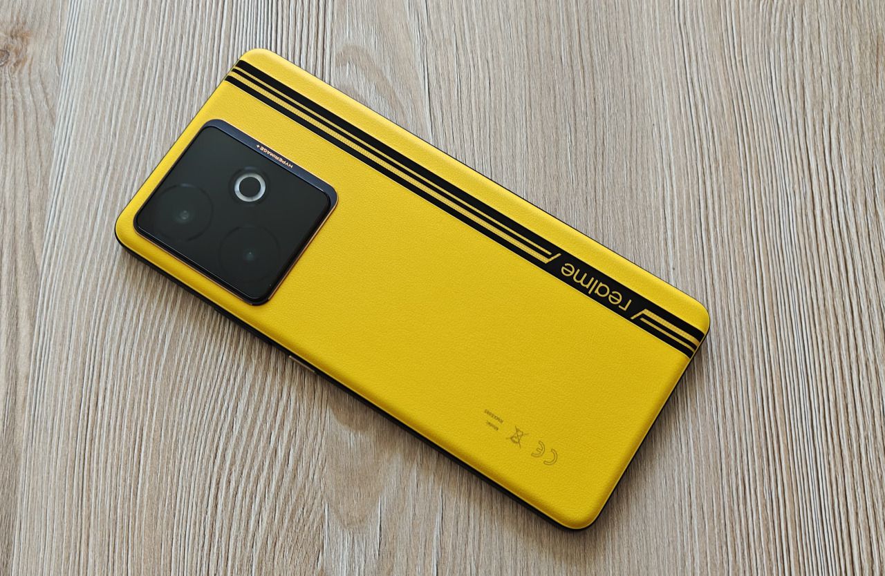 El diseño del Realme GT 7T es muy similar al de sus hermanos mayores (GT7 y GT7 Pro) de la séptima generación de la serie GT, la más avanzada de la marca. En el caso de nuestra unidad de pruebas encontramos un dispositivo con una estética arriesgada, debido a su trasera de color amarillo profundo en cuero vegano atravesada por una gruesa línea negra como elemento de contraste. Es un estilo de inspiración automovilística (su nombre ya lo dice todo, “amarillo velocidad”) que no deja indiferente a nadie, o te encanta o lo odias.