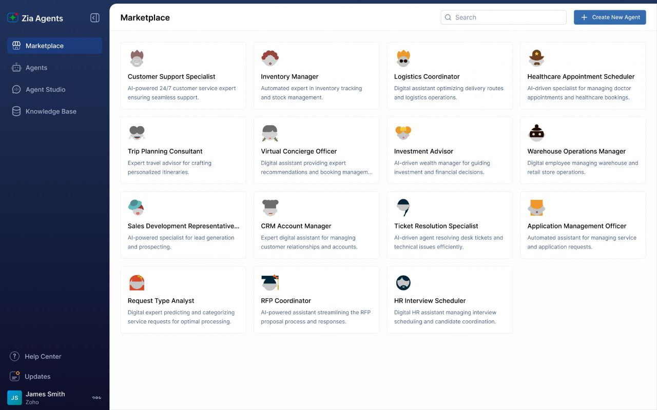 Con la introducción de Zia Agents, Zoho ha llevado su tecnología un paso más allá. Estos nuevos agentes preconfigurados están diseñados para realizar tareas específicas, como la gestión de cuentas, atención al cliente, recursos humanos y soporte técnico. La versatilidad de Zia Agents permite a las empresas contar con una solución de inteligencia artificial que cubre una amplia gama de funciones empresariales, mejorando la eficiencia y productividad de los equipos.